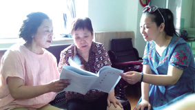▲ 日前,甌寧街道福寧社區(qū)黨總支書記季雅娟、主任李靜來到行動不便的老黨員家中送學上門,耐心講解“兩學一做”學習教育內(nèi)容,并與她一起交流學習心得。