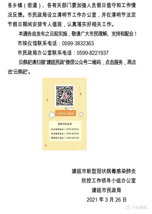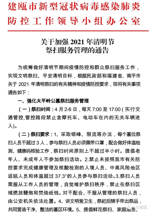 關于加強2021年清明節祭掃服務管理的通告