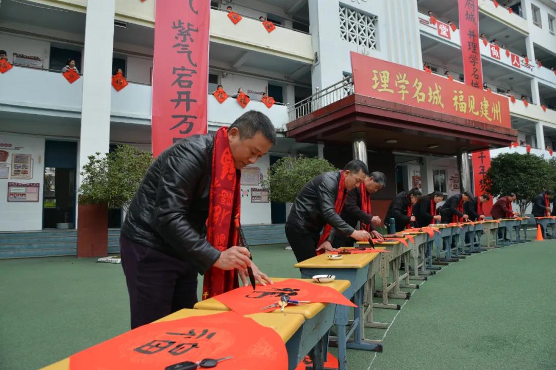 1月19日,建甌市“福”氣濃濃,我市100余位書法愛好者共寫“福”字,共祝新年。 此次百“福”迎春活動以“理學名城 福見建州”為主題,由建甌市委宣傳部主辦,建甌市文聯、市融媒體中心、市書法家協會和建甌市第一小學承辦。活動現場,書法家們圍繞學生“福”字造型,站成圓圈;中間由第一小學的小小書法愛好者們擺成“福”字造型。教學樓兩側,一墻一瓦間布滿“福”的印跡,洋溢著收獲的喜悅。