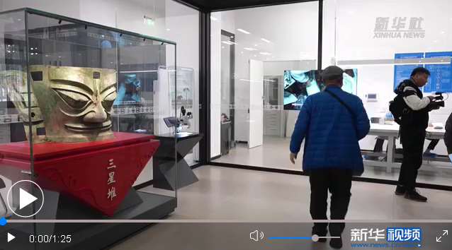 2月15日,在2022年春晚上亮相的三星堆青銅大面具“回家”,在四川省廣漢市的三星堆博物館臨時展出,讓前來參觀的游客“先睹為快”。