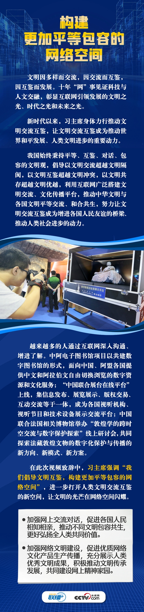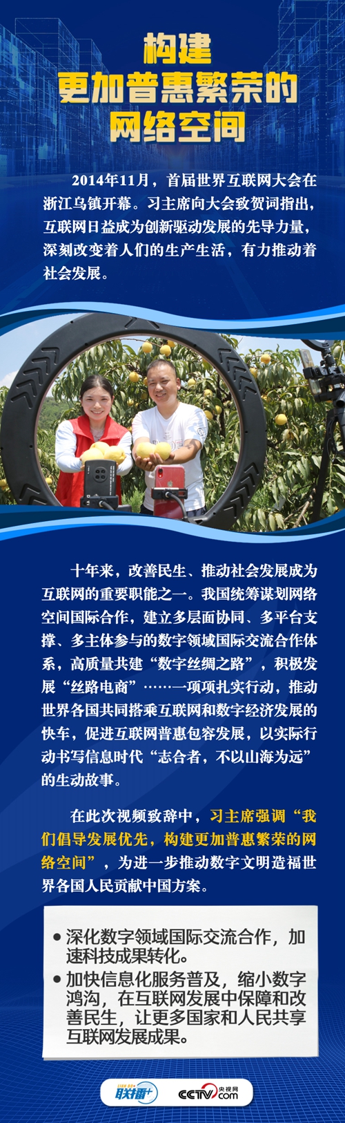 11月8日上午,國家主席習近平向2023年世界互聯網大會烏鎮峰會開幕式發表視頻致辭。 面對新的時代課題,習主席在此次視頻致辭中倡導構建更加普惠繁榮、更加和平安全、更加平等包容的網絡空間。這三個“網絡空間”具體內容是什么?構建網絡“新空間”有什么具體措施?央視網《聯播+》與您一同學習。
