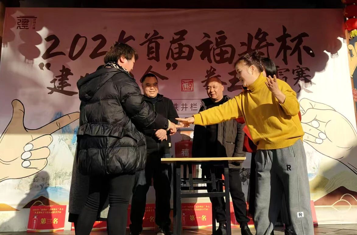 1月14日,由甌寧街道辦事處主辦,街道振興鄉村公司承辦的2025年首屆福將杯“建州酒令”拳王爭霸賽甌寧片區選拔賽,在鐵井欄尚書井廣場開賽,來自甌寧街道的16名“拳手”參賽。 “一定敬你、五子登科、九老壽、全家福……”比賽現場,選手們抄著建甌方言,一句句充滿吉祥寓意的酒令伴隨著特色拳法脫口而出,聲聲響亮、拳拳有力,引得圍觀群眾歡呼雀躍。 選拔賽分為男組、女組各8名選手,比賽項目為“搶三碼”(即每局三拳兩勝賽制),每對選手對決三局,以三局兩勝為贏。第一輪勝出的4名選手兩兩角逐后,2名勝者再次爭奪一、二名,2名敗者爭奪第三名。在熱鬧的氣氛中,經過一個多小時的對決,男、女組前三名終于誕生。 選拔賽后,現場還安排了有獎挑戰賽。挑戰賽采取拳拳消(六拳四勝)賽制,由選拔賽勝出的6名選手作為守擂方,接受圍觀游客挑戰,緊張又充滿挑戰的比賽規則,讓現場游客紛紛摩拳擦掌,躍躍欲試。 據考證,建州酒文化距今已有3000多年的歷史,明清時期已有“犁花春”“西施紅”“狀元紅”“金盤菊”等名酒行銷于世,建甌素有“酒城”之美稱。 酒雖好仍需吆喝。近年來,建甌市搶抓南平“一瓶水(酒)”發展戰略,聚焦“千年建州·理學名城”定位,將酒文化與古城歷史相融合,同發展。此次選擇在鐵井欄歷史文化街區舉辦福將杯“建州酒令”拳王爭霸賽即是建甌市“以酒迎客、以‘拳’會友”,助推國家歷史文化名城創建的又一舉措。(柯斌) |