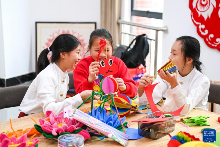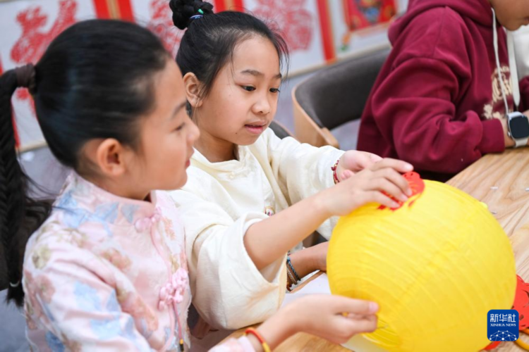 2月7日,在廣西興業(yè)縣文化館,小朋友在制作燈籠。 寒假里,廣西玉林市興業(yè)縣教育部門與縣文化館通過組織剪紙、制作燈籠、包湯圓等趣味活動,豐富學(xué)生的假期生活,迎接即將到來的元宵佳節(jié)。 新華社記者 曹祎銘 攝