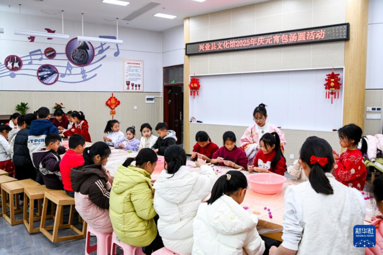2月7日,在廣西興業(yè)縣文化館,小朋友在包湯圓。 寒假里,廣西玉林市興業(yè)縣教育部門與縣文化館通過組織剪紙、制作燈籠、包湯圓等趣味活動,豐富學(xué)生的假期生活,迎接即將到來的元宵佳節(jié)。 新華社記者 曹祎銘 攝