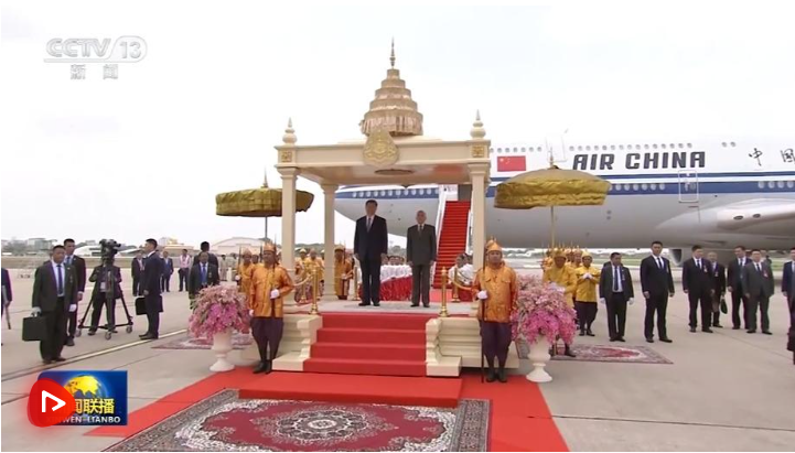 當地時間4月17日上午,國家主席習近平乘專機抵達金邊,應柬埔寨國王西哈莫尼邀請,對柬埔寨進行國事訪問。 當地時間4月17日上午,國家主席習近平乘專機抵達金邊,應柬埔寨國王西哈莫尼邀請,對柬埔寨進行國事訪問。