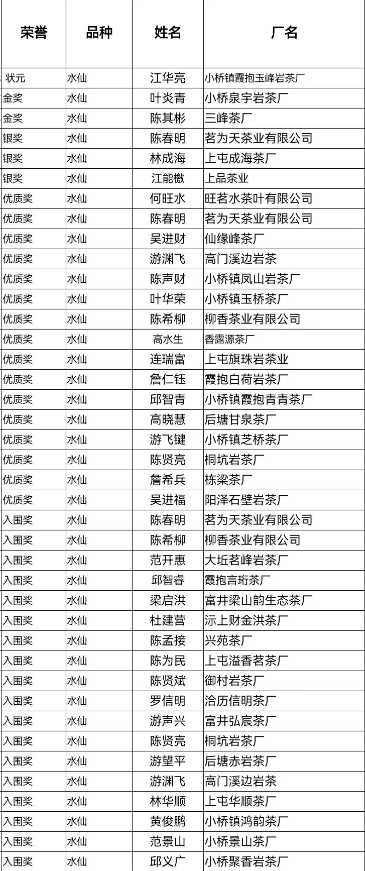 2025年小橋鎮(zhèn)第十六屆“斗茶”賽 肉桂品種獲獎名單