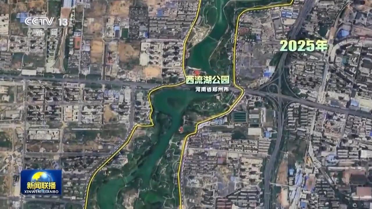 這是河南鄭州西流湖公園,賈魯河故道灘涂上3.2平方公里新增植被已綠樹成蔭。