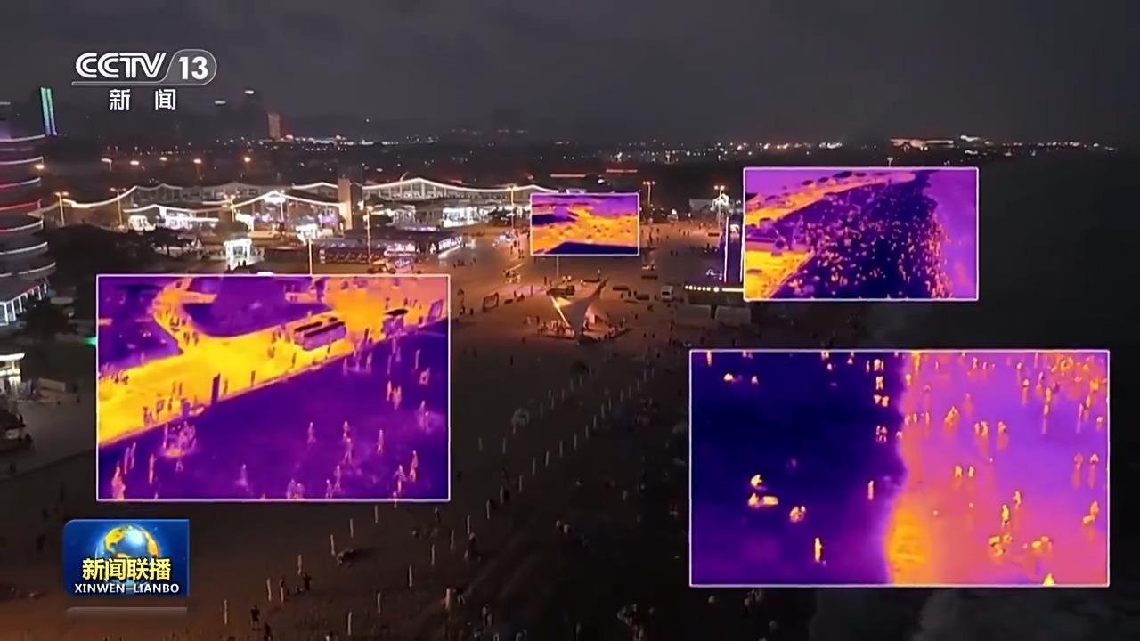 這是山東日照臥龍山街道,近海養殖區、岸線破損處,蛻變為一條陽光海岸綠道。夜幕降臨,熱成像系統觀察到,這里每天約有2萬人次的流動聚集,十多種不同的運動模態,讓這條綠道煥發著勃勃生機。