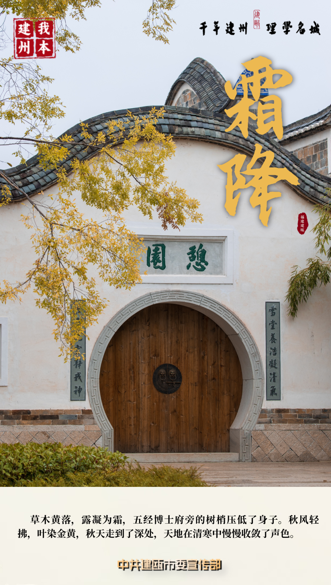 草木黃落,露凝為霜,五經(jīng)博士府旁的樹梢壓低了身子。秋風(fēng)輕拂,葉染金黃,秋天走到了深處,天地在清寒中慢慢收斂了聲色。 |