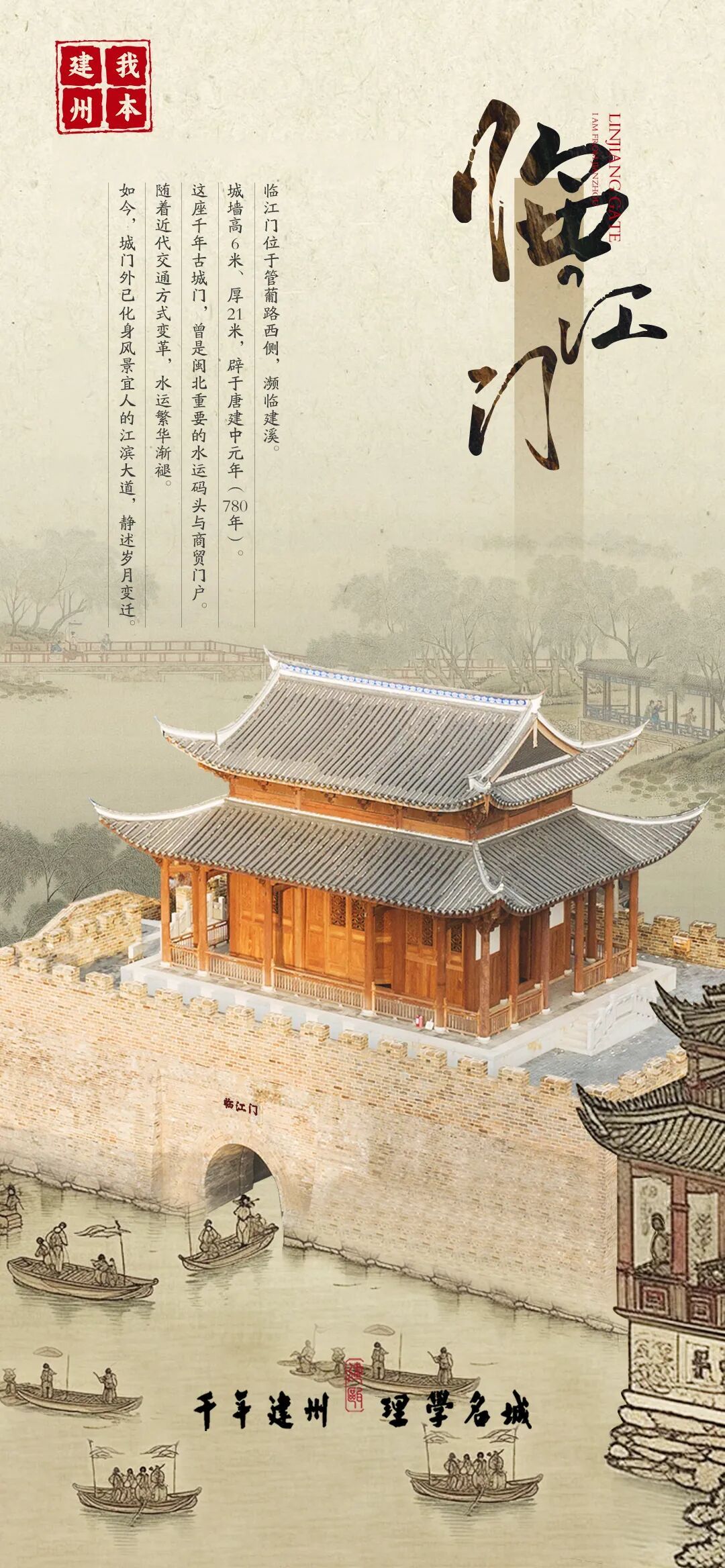 臨江門位于管葡路西側(cè),瀕臨建溪。城墻高6米、厚21米,辟于唐建中元年(780年)。這座千年古城門,曾是閩北重要的水運碼頭與商貿(mào)門戶。隨著近代交通方式變革,水運繁華漸褪。如今,城門外已化身風(fēng)景宜人的江濱大道,靜述歲月變遷。 |