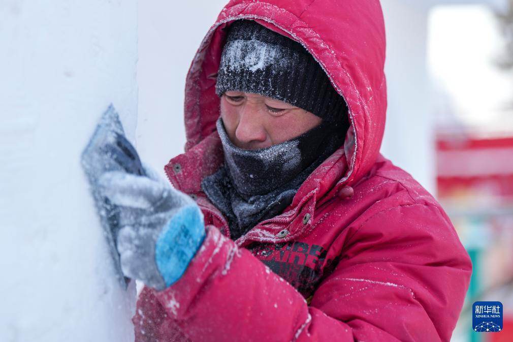 在第38屆太陽島國際雪雕藝術(shù)博覽會園區(qū),雪雕師對雪雕景觀進(jìn)行創(chuàng)作(12月26日攝)。 12月27日,第38屆太陽島國際雪雕藝術(shù)博覽會試開園。本屆雪博會以“冰天雪地 詩情畫意”為主題,規(guī)劃面積達(dá)150萬平方米,總用雪量12萬立方米。從氣勢恢宏的大型雪雕群到精美逼真的創(chuàng)意雪雕作品,雪博會將為人們呈現(xiàn)一場冰城雪境的藝術(shù)盛宴。 新華社記者 王松 攝