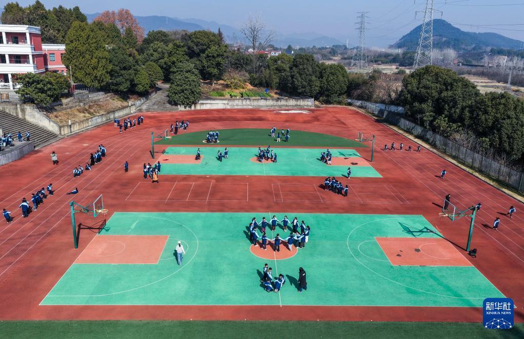 1月9日,在諸暨市陶朱街道白門完小的操場上,學生們正在參加傳統游戲課(無人機照片)。 近期,為豐富學生課間生活、傳承中華優秀傳統文化,浙江省諸暨市陶朱街道中心學校下屬各小學開設了傳統游戲課程,打陀螺、跳房子、踩高蹺等多項傳統游戲讓學生們玩得不亦樂乎。 新華社記者 徐昱 攝 |