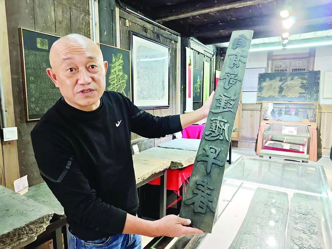 龔文斌向記者展示明代木雕 在文物研究、歷史考證、文化傳承中,拓片發揮著不可替代的重要作用。對于那些已經殘損、佚毀的文物而言,拓片更成為無法復制的珍貴資料,為后人研究古代歷史文化提供了直觀、真實的依據。閩北豐富的金石古跡,與傳拓技藝相互成就,讓歷史文脈得以通過拓片的形式代代相傳。 我國古代的許多碑刻、銘文,因戰亂兵燹、自然風化等原因,原物難以保存,而拓片則真實記錄了這些文物的原始風貌,一比一的復刻比例能精準呈現器物的細微紋路,成為文物修復、仿制、重建的重要依據。為了讓拓片的文化價值得到更好地發揮,龔文斌多年來致力于閩北古代墓志銘等金石拓片的收集、整理與捐贈工作。2007年,他向西泠印社捐贈117幅古建州墓志銘拓片,這些拓片被妥善收藏,被2011年出版的《西泠印社藏品捐贈名錄》刊登。2018年6月,他提供原碑拓片,助力武夷文化研究院出版《閩北古代墓志銘專刊》,為閩北歷史文化研究提供了珍貴的一手資料。此外,他還積極參與各類學術交流活動,2020年1月,其作品《明早期許衡碑》《明代洪熙年石雕官權》入選在北京舉辦的“快雪時晴”全國金石題跋名家作品庫,讓建甌傳拓技藝走出閩北,獲得更廣泛的認可。 建甌歷史底蘊深厚,留存的摩崖石刻、祠堂碑、廟宇碑、山界碑、墓志銘等金石遺存眾多,通過傳拓技藝將這些信息完整提取、整理,能讓歷史文化內涵得到更充分的挖掘與弘揚。 如今,通過龔文斌等傳承人的努力,這些珍貴的金石遺存被逐一拓印整理,既為文物保護提供了依據,也讓蘊含其中的文化內涵得以更好地傳播。拓片與建甌的歷史文物相互賦能,讓千年文脈在當代煥發出新的光彩。 |
