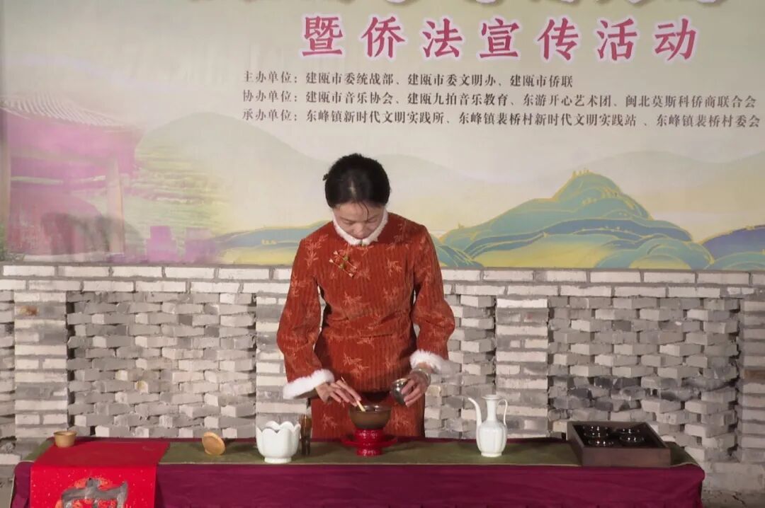 活動現(xiàn)場,燈火璀璨、熱鬧非凡。開場節(jié)目《我相信》節(jié)奏明快、充滿力量,瞬間點燃現(xiàn)場氣氛;歌舞《喀秋莎》獨具異域風情,展現(xiàn)了僑界群體的多元文化風采;歌曲《晴天》《七里香》等經(jīng)典旋律則引發(fā)了現(xiàn)場觀眾的共鳴;方言快板《勸酒經(jīng)》,用接地氣的鄉(xiāng)音傳遞文明新風,詼諧幽默的表演讓觀眾忍俊不禁;張瑩瑩帶來的點茶技藝表演,則讓現(xiàn)場群眾領(lǐng)略了宋韻文化的獨特韻味,她還分享了自己的 “新農(nóng)人” 創(chuàng)業(yè)故事,傳遞出新時代青年投身鄉(xiāng)村振興的責任與擔當,激勵著更多人關(guān)注鄉(xiāng)村、建設(shè)鄉(xiāng)村。