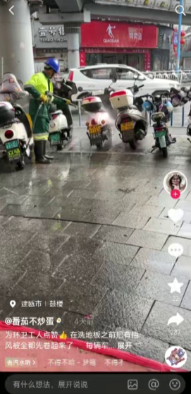 近日,一則記錄我市環衛工人工作細節的短視頻在社交平臺引發關注。視頻中,環衛工人在清洗街道前,主動將路邊摩托車、電動車上的擋風逐一卷起,并細致沖洗每輛車的車身,這一暖心舉動被路過的市民拍下并分享至網絡,獲得許多網友的評論與轉發。