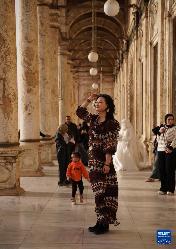 1月30日,游客在埃及開羅薩拉丁城堡內的穆罕默德·阿里清真寺前游覽、合影。 薩拉丁城堡位于開羅東郊,由古代埃及蘇丹薩拉丁為抗擊十字軍于公元12世紀建造,是開羅最著名古跡之一。 新華社記者 張浩波 攝