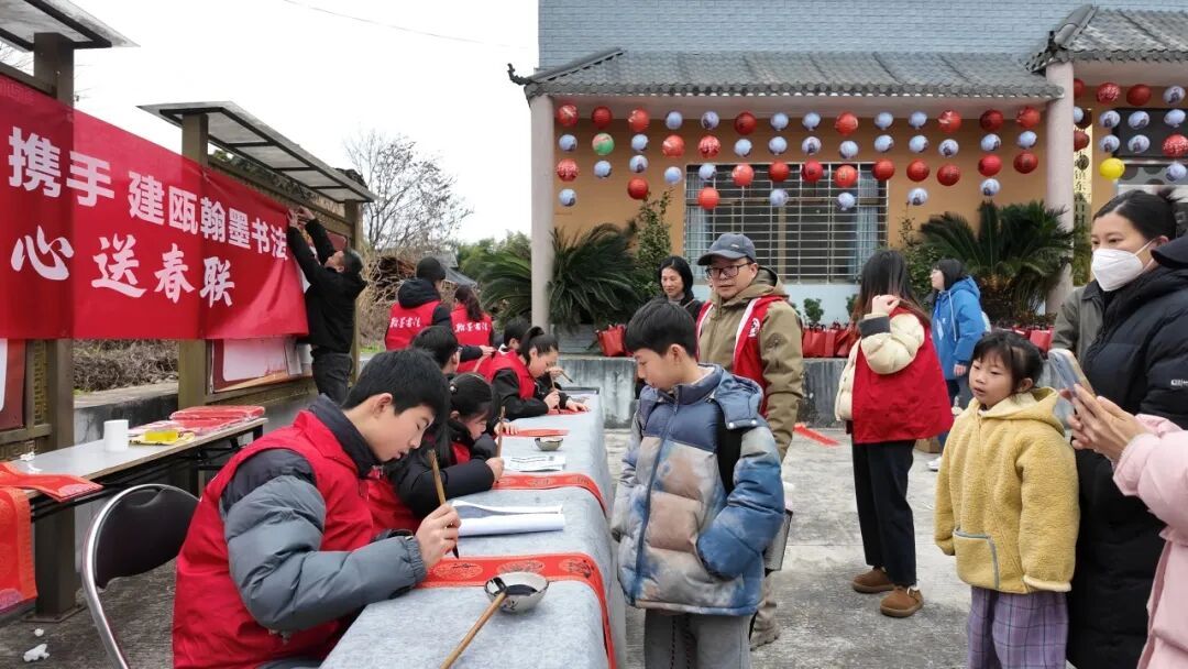 在村內小公園走廊路旁的鄉村集市,十個商貿展位整齊排開,展售本地農特產、手作美食、傳統工藝品等,吸引眾多來賓駐足品嘗、選購。集市上人來人往,叫賣聲、交談聲不絕于耳,充滿質樸溫暖的鄉土煙火氣。同時,在集市一側還設有“寫春聯送福”活動,一副副寓意吉祥的春聯在筆尖流淌,承載了人們對新春的美好期盼。