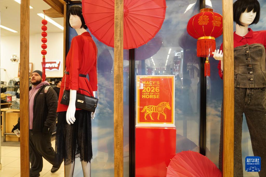 這是2月4日在美國紐約皇后區法拉盛一家商場內拍攝的春節裝飾。 近日,在美國紐約皇后區法拉盛,春節主題裝飾和商品在一些商場和街邊商鋪出現,增添了喜慶的節日氛圍。 新華社記者 張鳳國 攝