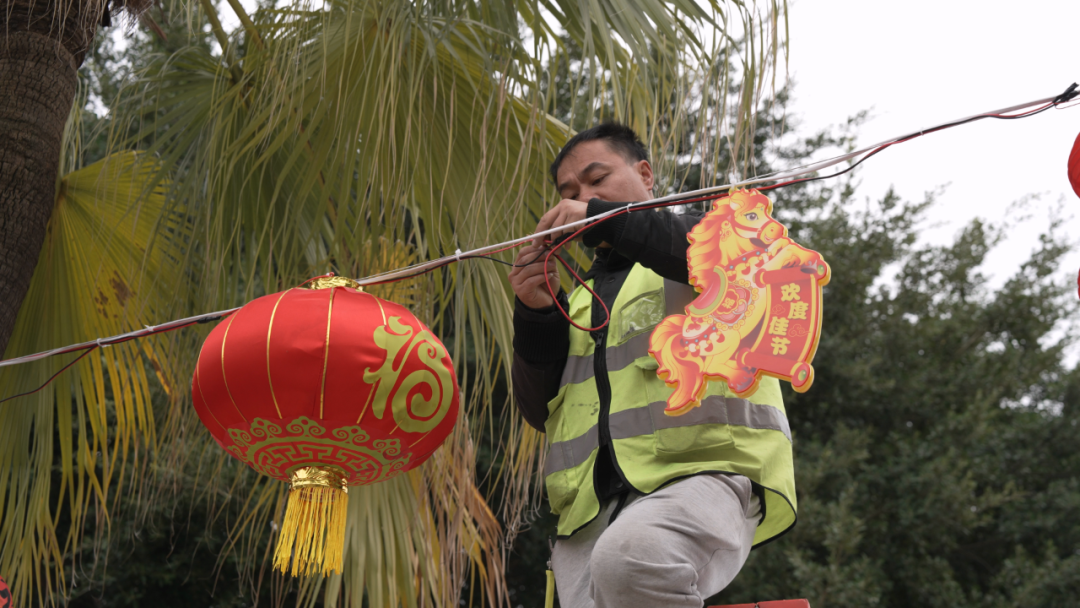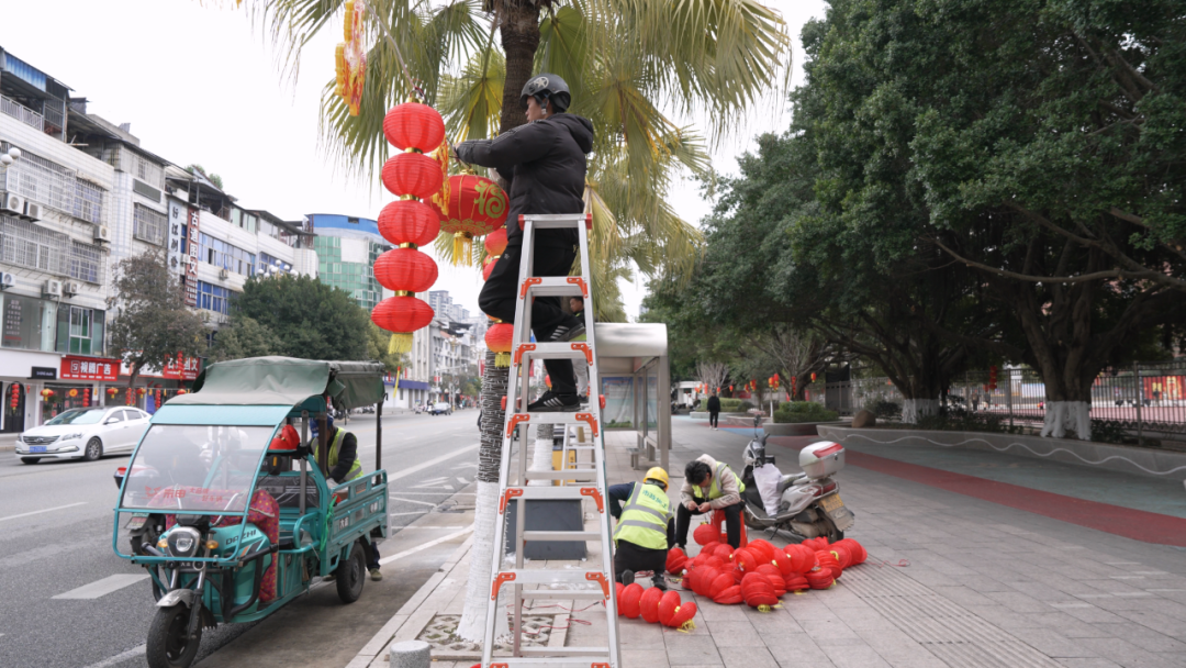 滿城璀璨的新春景致,離不開工人們的默默耕耘與辛勤付出。連日來,園林市政工人們穿梭于城區各點位,搭梯登高、拉線掛燈、調試檢修,用汗水為千年古城鋪就濃厚的新春底色。