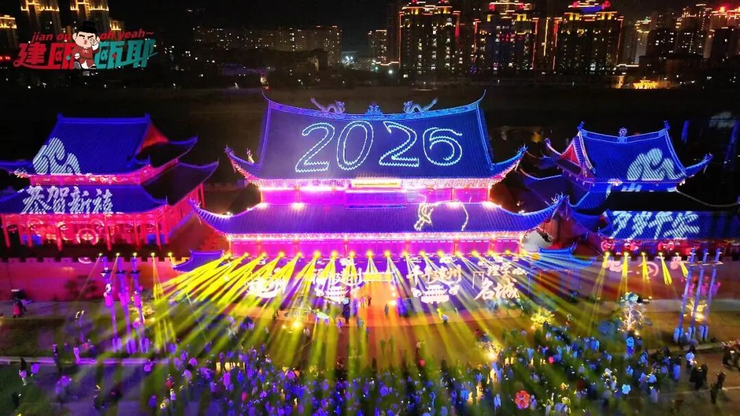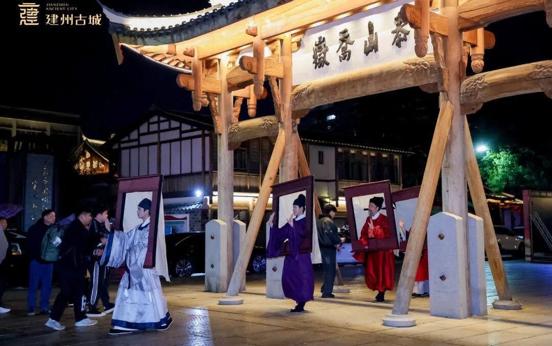 千年古城煥新韻,宋韻建州年味濃。今年春節期間,建甌以“千年盛景·宋韻建州”為主題,精心策劃了一系列融合傳統文化與現代創意的新春活動。從再現宋代禮制的朱子婚禮巡游,到光影交織的古城激光秀,再到熱鬧歡騰的篝火晚會,豐富多彩的體驗不僅讓市民游客沉浸式感受了宋韻文化的魅力,也讓這座千年古城在濃濃年味中“活”起來、“火”起來。