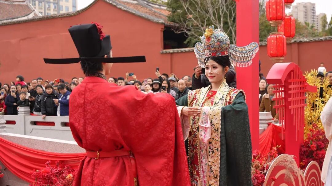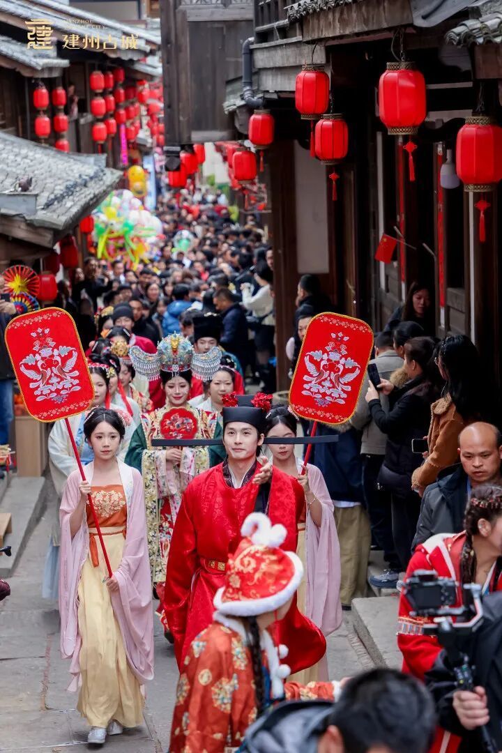這正是今年建甌新春系列活動中的重頭戲——以宋代禮儀為藍本的“朱子婚禮”巡游表演。活動不僅生動還原了朱熹大婚的盛況,更讓宋韻文化以鮮活的方式走進尋常百姓家。