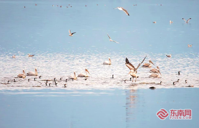 近日,福州羅源灣來(lái)了一群國(guó)家一級(jí)保護(hù)鳥類卷羽鵜鶘,吸引不少觀鳥愛好者前往拍攝。據(jù)羅源縣自然資源和規(guī)劃局野生動(dòng)植物管理站負(fù)責(zé)人游永喜介紹,羅源灣海域魚類資源豐富,為鳥類提供了充足的食物,并且當(dāng)?shù)爻掷m(xù)多年開展愛鳥護(hù)鳥、生態(tài)保護(hù)工作,成為候鳥遷徙路線上的重要“驛站”。 福建日?qǐng)?bào) 倪炎通 陳歡歡 攝 |