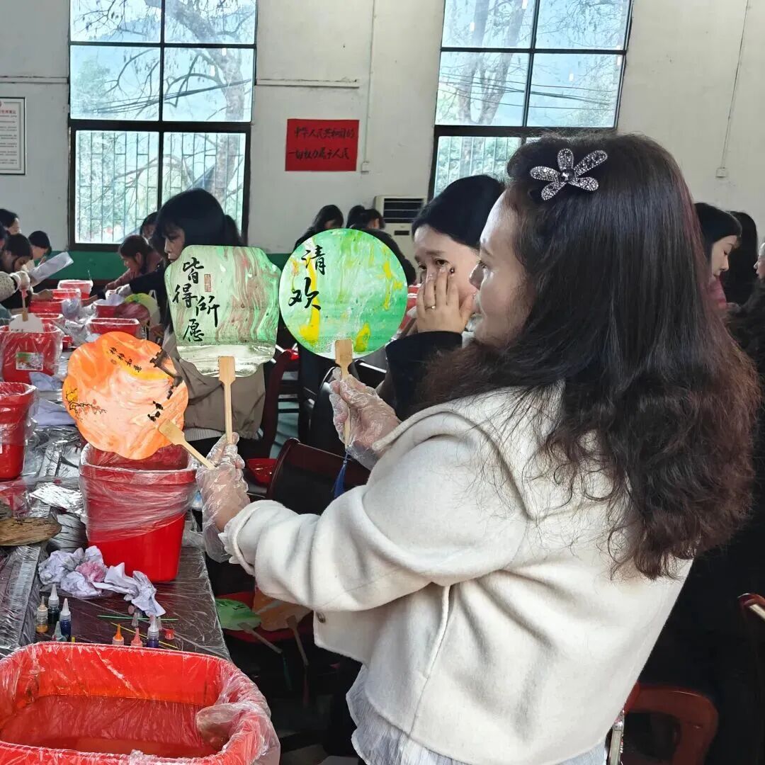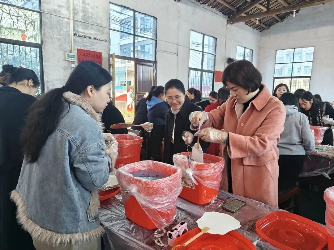 活動現場暖意融融、氛圍熱烈。婦女同胞們化身手工匠人,以扇為紙、以漆為墨,靜心調漆、巧妙配色、細膩暈染,斑斕色彩在扇面自然暈開,傳統漆藝與巾幗巧思完美交融。一把把匠心獨運的漆扇在掌心綻放,件件作品獨一無二、韻味十足,盡顯女性的靈動與雅致。