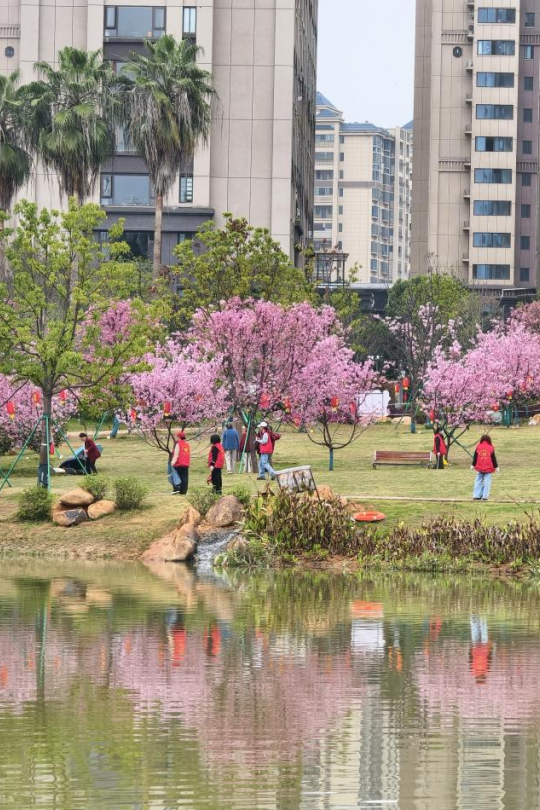 便民服務與環保行動同步發力。在橋南社區中僑江南名都小區,健康義診志愿服務暖心上線,醫護志愿者現場傳授居民急救知識,為居民測量血壓、血糖,提供健康咨詢、慢病指導、用藥建議等服務,把專業醫療服務送到居民家門口,切實守護群眾身體健康。次日,志愿者們還來到朱子公園,開展環境衛生清潔行動,大伙兒手持垃圾夾、垃圾袋,認真清理公園內的紙屑、塑料袋、煙頭等雜物,并用網兜打撈掉在湖里的垃圾,清理公園衛生死角,以實際行動守護公共環境整潔,倡導綠色文明生活理念。