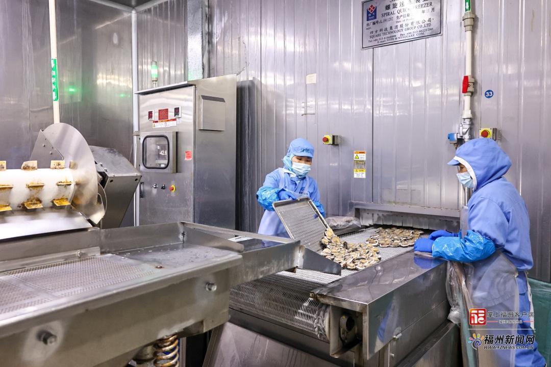 灃運生產(chǎn)車間,工人正在緊張忙碌著。(連江融媒體中心供圖) 走進灃運控股生產(chǎn)車間,撲面而來的不是料峭春寒,而是一條沸騰的生產(chǎn)線——機器轟鳴,工人忙碌,一枚枚剛從海上運來的鮮活鮑魚,正排隊“游”進生產(chǎn)線,開啟從海洋到餐桌的“極速之旅”。 去殼、清洗、分揀……工人們動作嫻熟,一氣呵成。緊接著,這些飽滿的“小鮮肉”便進入零下196℃的液氮速凍通道,幾秒鐘內(nèi)完成“鎖鮮”,從海中之珍變身“凍品新貴”,整裝待發(fā)。