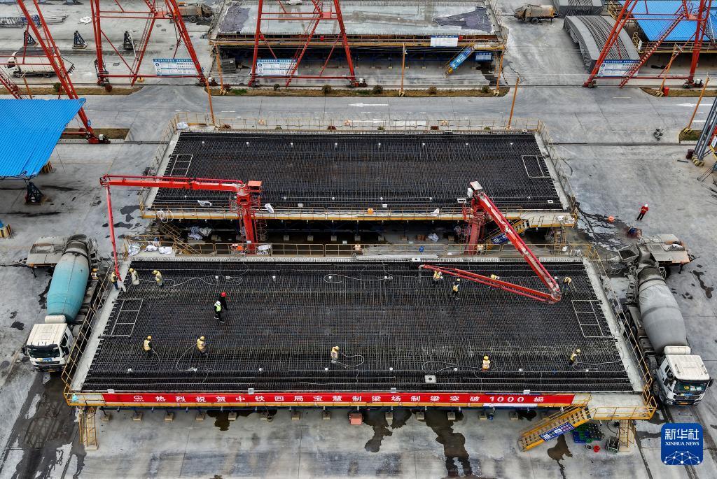 3月26日,工人在中鐵四局寶慧制梁場1000榀箱梁澆筑施工現場進行混凝土澆筑作業。 3月26日,隨著一榀長32.6米、重673噸的箱梁順利完成澆筑,位于上海市寶山區的中鐵四局滬寧合高鐵滬寧段Ⅱ標寶慧制梁場預制箱梁產量成功突破1000榀大關,滬寧合高鐵滬寧段及滬通鐵路二期工程建設取得重要階段性成果,為后續大規模架梁施工和全線貫通奠定了堅實基礎。 滬寧合高鐵滬寧段是國家“八縱八橫”高速鐵路網沿江高鐵通道的重要組成部分,滬通鐵路二期亦是沿海通道的關鍵一環。兩條線路建成通車后,將在上海大都市圈、南京都市圈和合肥都市圈間建起一條快速新通道,對于優化沿長江地區鐵路網布局、服務長江經濟帶協同發展、推動長三角高質量一體化發展具有重要意義。 新華社記者 方喆 攝