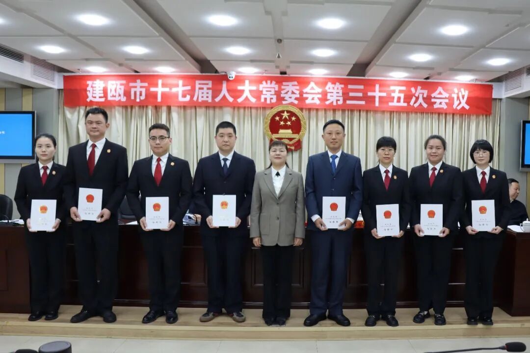 會議進行了有關人事任免事項,以按表決器表決方式通過了市監委、市法院有關人員免職的決定,以無記名投票表決方式通過了市監委、市法院人事事項。市人大常委會任命陳龍、廖靖兩位同志為建甌市監察委員會委員;新獲任命的陳龍、廖靖兩位同志分別在本次人大常委會會上作憲法宣誓。表決通過范曉璐、劉余、楊毅峰、楊式雯、陳曉玲、劉慶文六位同志的相關職務。