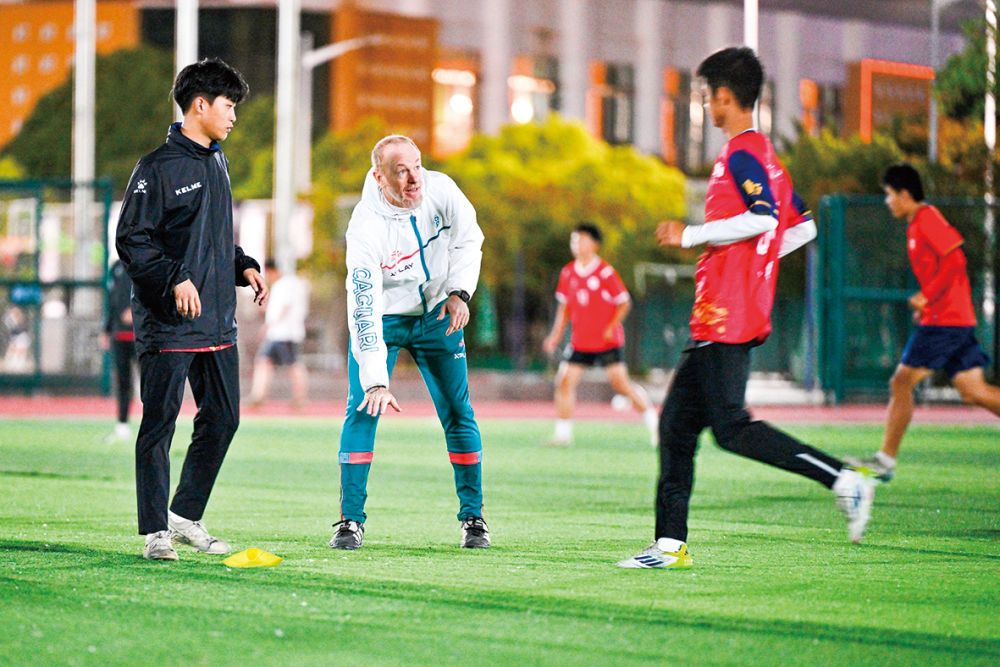 2025年10月29日,教練馬科斯·卡普里奧洛(中)在指導(dǎo)霞浦一中高中男子足球隊訓(xùn)練。新華社記者 姜克紅攝 馬科斯·卡普里奧洛和阿萊·塔里斯是首批常駐霞浦開展青訓(xùn)的意大利教練,兩人共同參與指導(dǎo)霞浦8支中小學(xué)足球隊的訓(xùn)練,同時也分別執(zhí)掌霞浦第一中學(xué)男、女子足球隊的教學(xué)。 為了適應(yīng)中國孩子們的學(xué)習(xí)節(jié)奏,兩位“洋教頭”白天開展訓(xùn)練復(fù)盤、戰(zhàn)術(shù)分析,與本地教練交流研討青訓(xùn)方法,晚間則利用學(xué)生課余時間開展實戰(zhàn)訓(xùn)練。這種全天候、沉浸式的教學(xué)模式,讓霞浦的小將們受益匪淺,技術(shù)水平得到了明顯提升。 帶訓(xùn)的時光里,霞浦孩子們對足球的渴望和訓(xùn)練時的認(rèn)真態(tài)度都給兩位意大利教練留下了深刻印象。“你能看到孩子們每天都在進(jìn)步。”卡普里奧洛說。 孩子們持續(xù)不斷的進(jìn)步很快交上了第一份亮眼“成績單”。在2025年夏天舉行的福建省青少年校園足球聯(lián)賽暨中學(xué)生足球錦標(biāo)賽中,霞浦第一中學(xué)女子足球隊一路過關(guān)斬將,奪得U18組別冠軍。 塔里斯回憶,奪冠瞬間,孩子們都激動地流下淚水,有很多家長、老師以及霞浦市民趕到比賽現(xiàn)場為姑娘們加油歡呼。“那個場景令人動容,是我到中國后經(jīng)歷的最難忘的時刻。”他說。