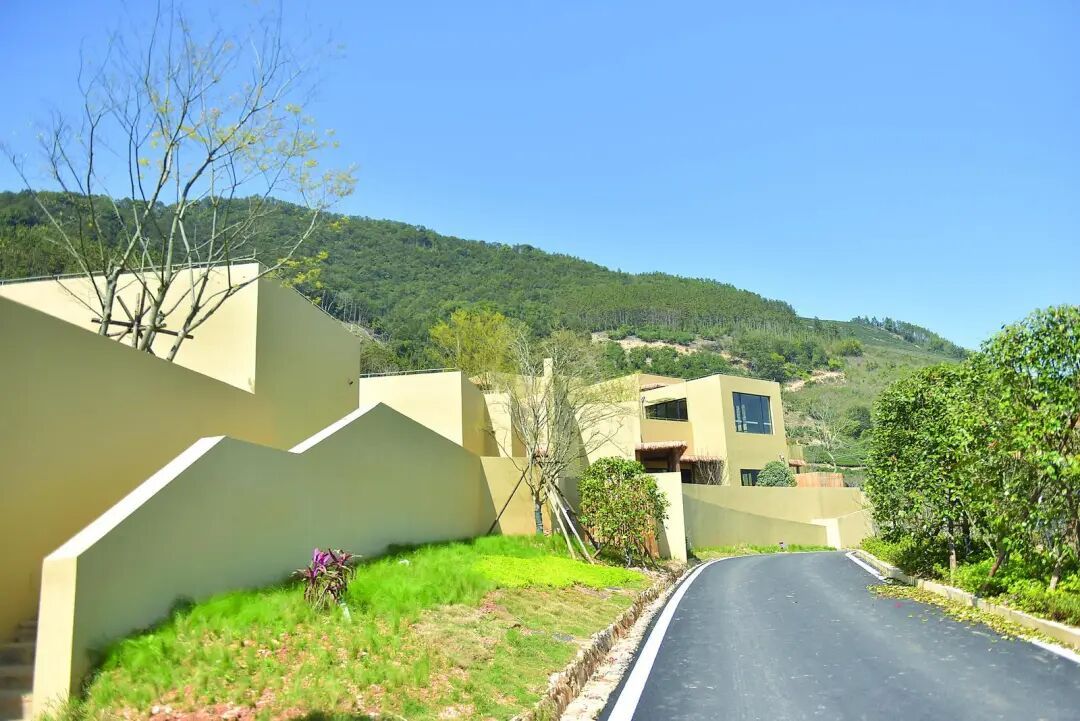 甘源茶山上奶黃色的民宿