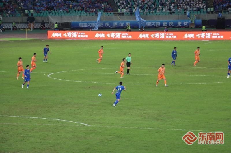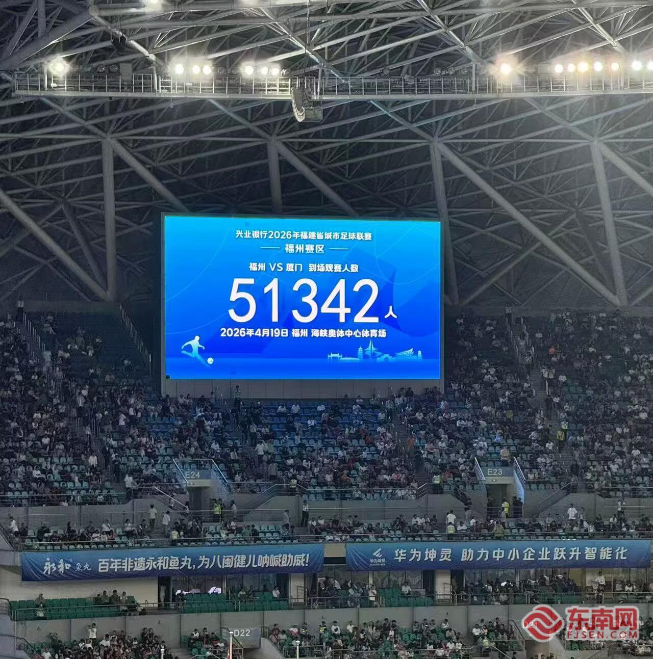 比賽現場。 東南網4月19日訊(本網記者 陳楠 盧金福 林夏悅 文/圖)綠茵燃情,紀錄誕生!4月19日晚,2026年福建省城市足球聯賽(閩超)揭幕戰在福州海峽奧體中心引爆全場,福州隊主場迎戰廈門隊。經過激烈的比拼,福州隊0:3不敵廈門隊。