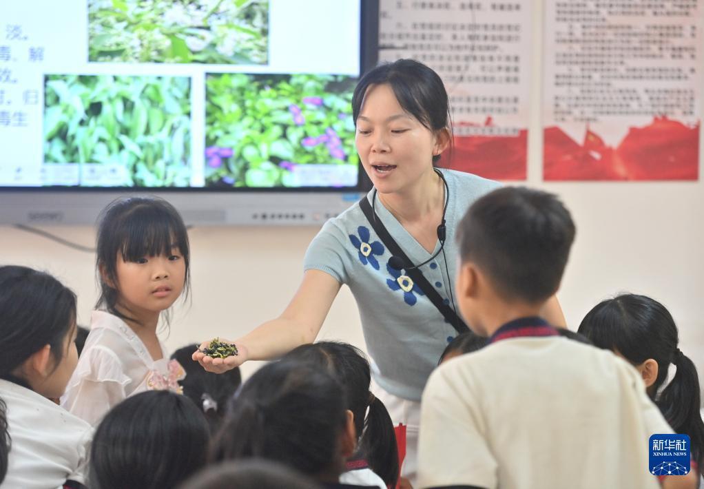 4月16日,在梧州市長(zhǎng)洲區(qū)倒水鎮(zhèn)大橋小學(xué),送教老師楊媛儀給學(xué)生上科技課。 4月16日,廣西梧州市長(zhǎng)洲區(qū)組織一批老師來到倒水鎮(zhèn)大橋小學(xué),開展送教下鄉(xiāng)活動(dòng),幫助鄉(xiāng)村小學(xué)學(xué)生了解非遺和科技知識(shí)。 新華社記者 黃孝邦 攝